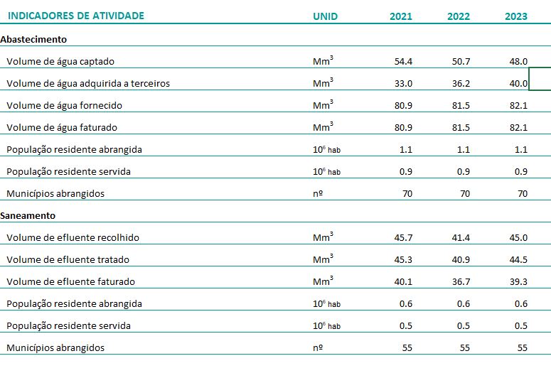 Criada em 29 de maio de 2015 a Águas de Lisboa e Vale do Tejo foi redenominada, pelo Decreto-Lei nº 34/2017, de 24 de março, no âmbito do processo de reorganização do setor de abastecimento de água e saneamento de águas residuais, para Águas do Vale do Tejo, S.A. e passa a disponibilizar os seus indicadores de atividade