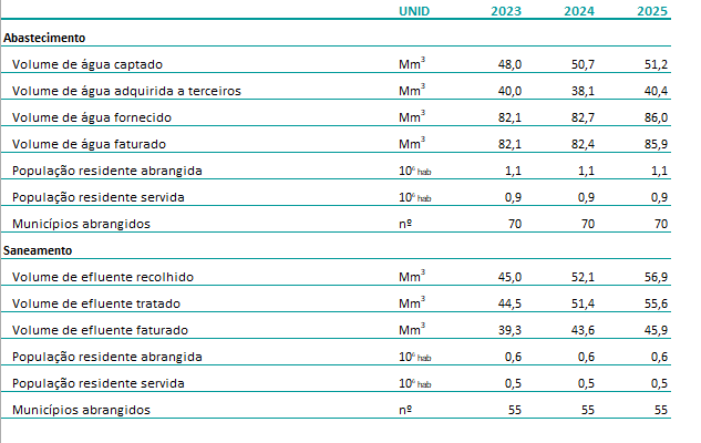 Criada em 29 de maio de 2015 a Águas de Lisboa e Vale do Tejo foi redenominada, pelo Decreto-Lei nº 34/2017, de 24 de março, no âmbito do processo de reorganização do setor de abastecimento de água e saneamento de águas residuais, para Águas do Vale do Tejo, S.A. e passa a disponibilizar os seus indicadores de atividade