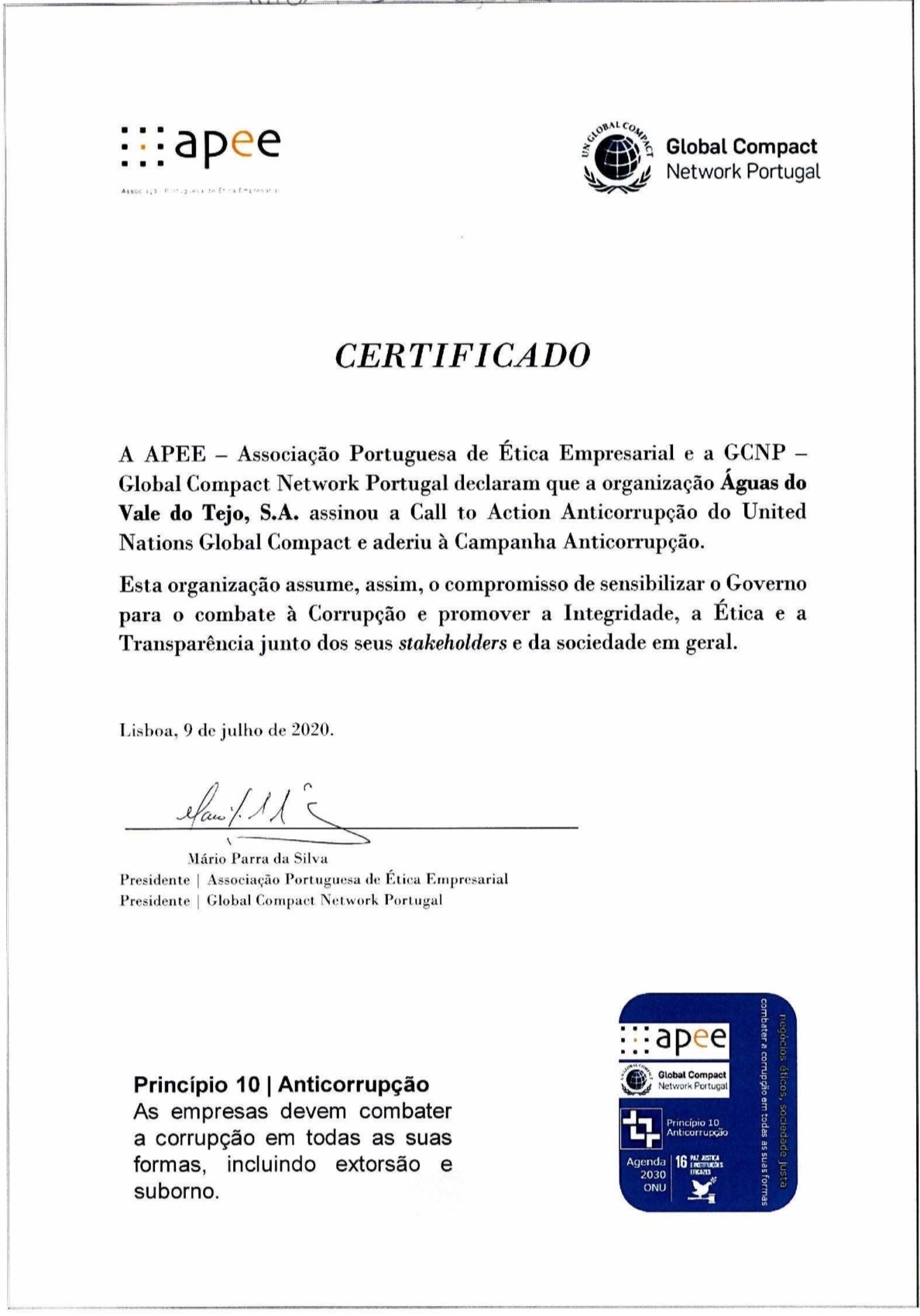 A empresa compromete-se para com a Ética e a Boa Governação, bem como em estimular o debate e a mobilização das empresas portuguesas para a temática da anticorrupção, assumindo a liderança através da assinatura carta da Call to Action Anticorrupção das Nações Unidas