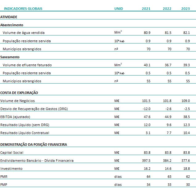 Criada em 29 de maio de 2015 a Águas de Lisboa e Vale do Tejo foi redenominada, pelo Decreto-Lei nº 34/2017, de 24 de março, no âmbito do processo de reorganização do setor de abastecimento de água e saneamento de águas residuais, para Águas do Vale do Tejo, S.A. e passa a disponibilizar os seus indicadores de atividade